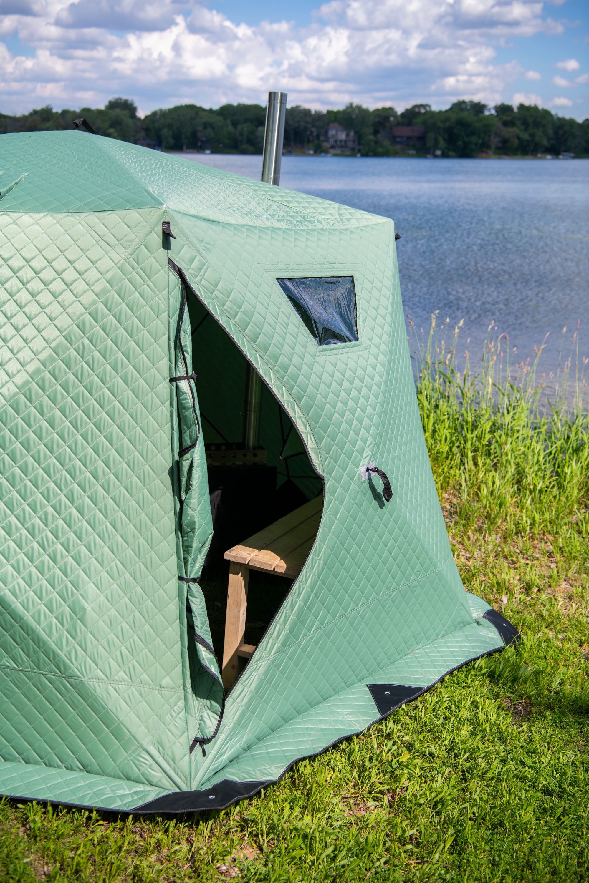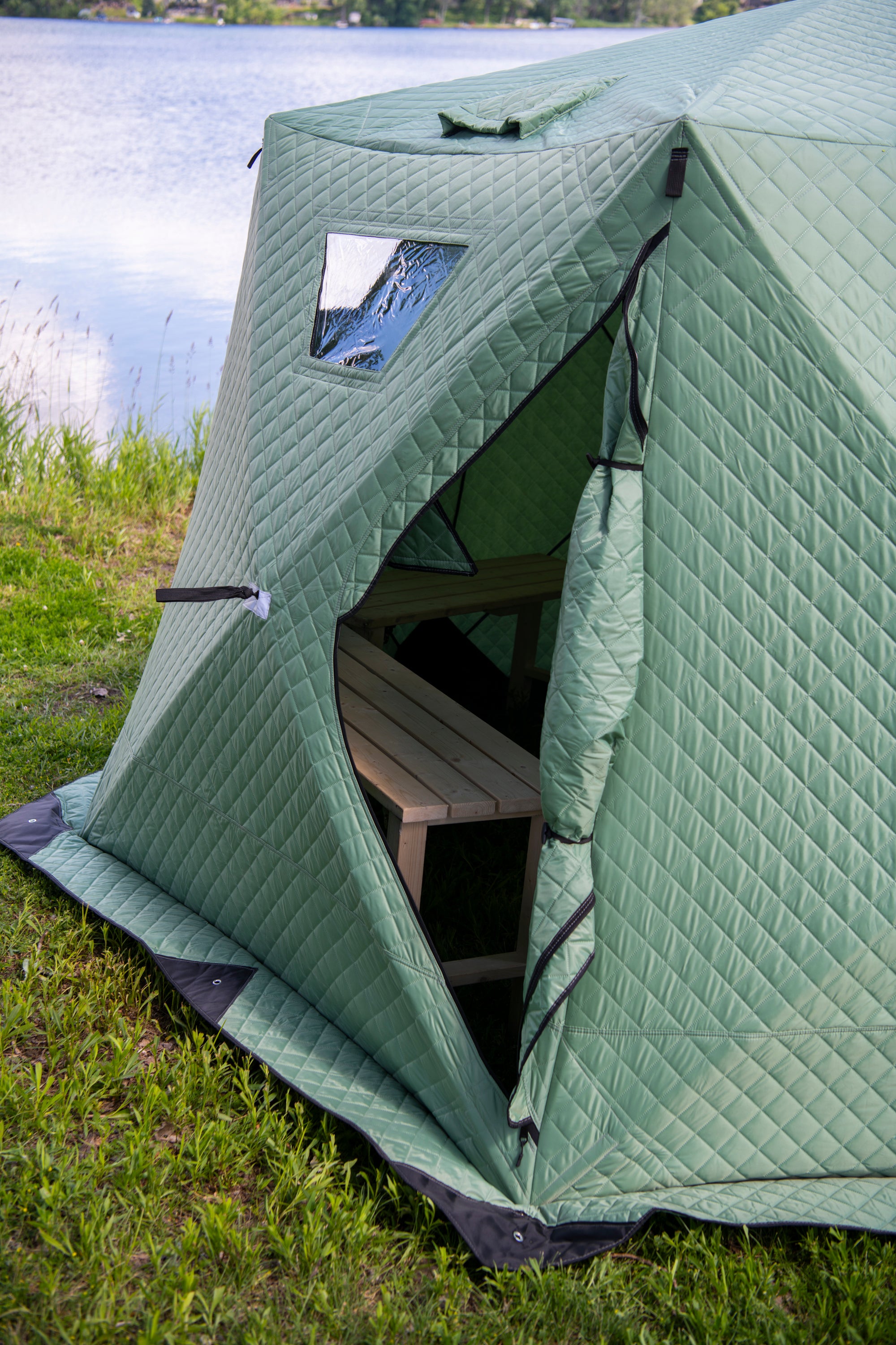 sauna tent offers versatility. It is available in a soothing green color inspired by the beauty of nature.